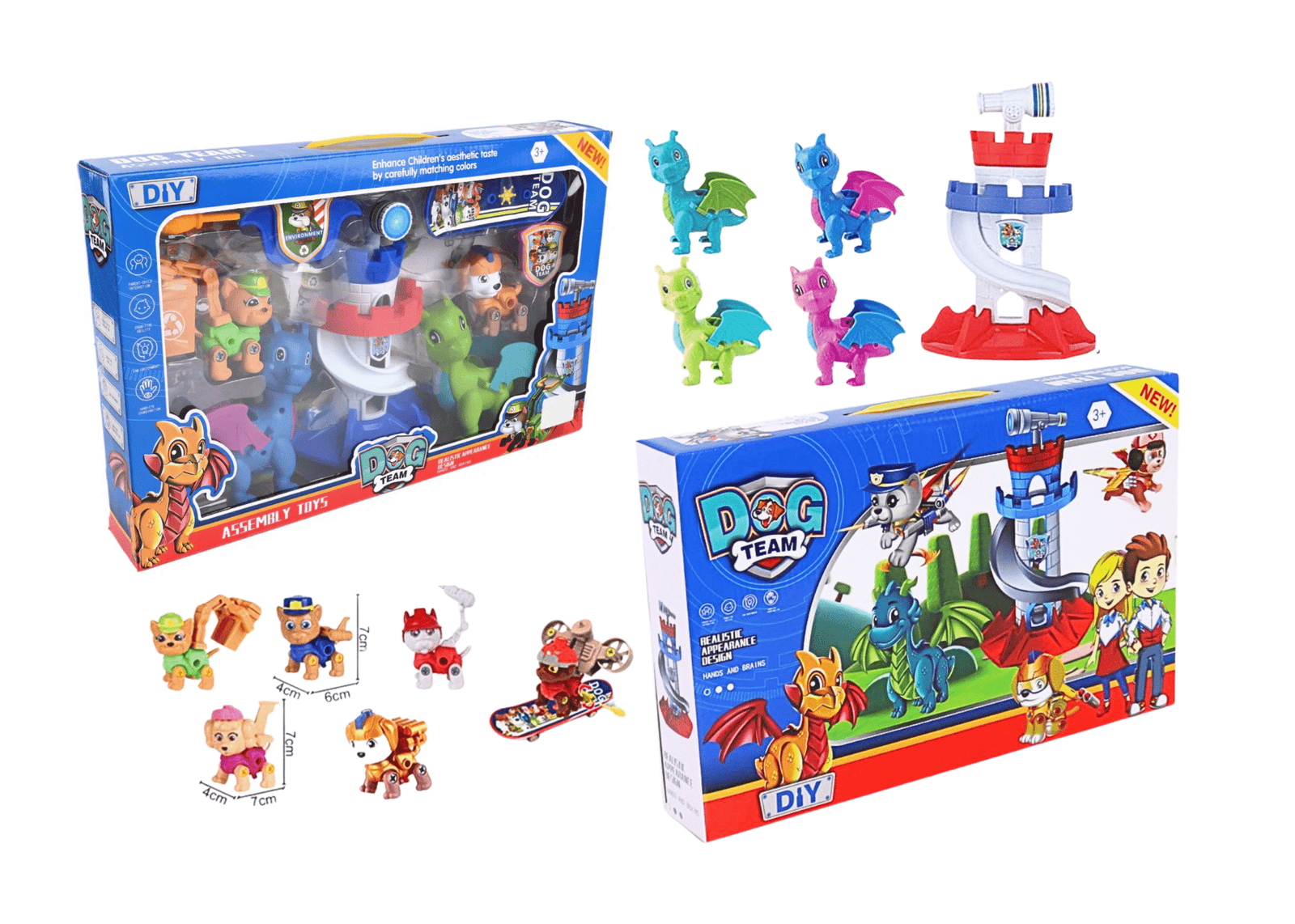 – DIY assembly toy with dog heroes and dragons