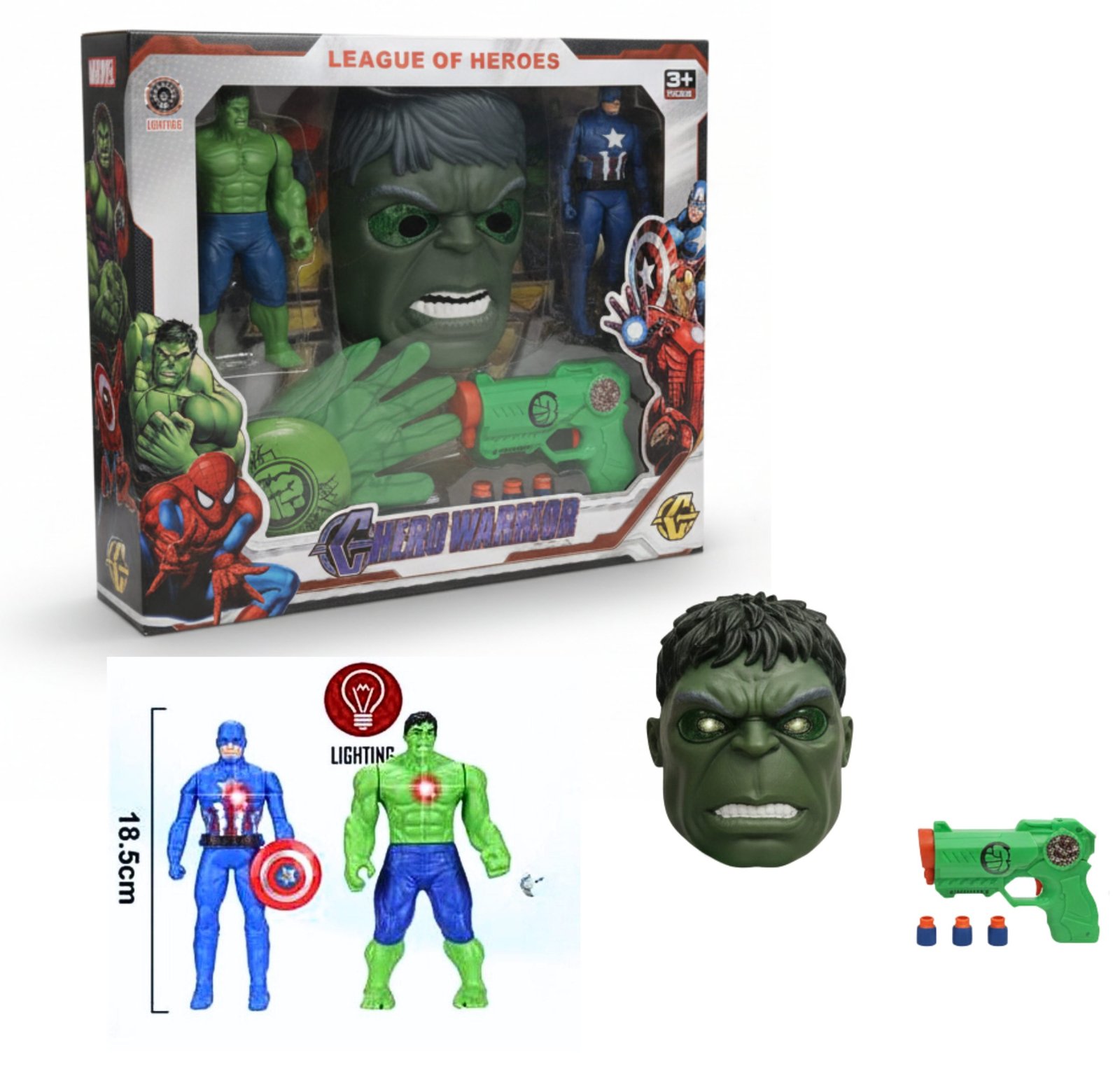 🦸‍♂️ LEAGUE OF HEROES – 3-Piece Superhero Toy Set with Hulk Mask & Action Figures