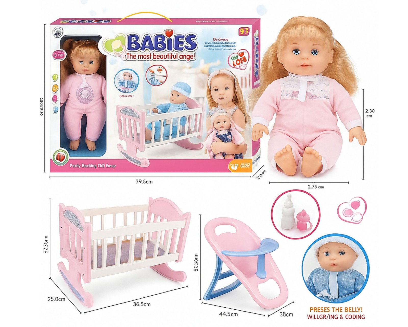 🧸 تشمل دمية بيبي – بملابس وردية وتعبير لطيف